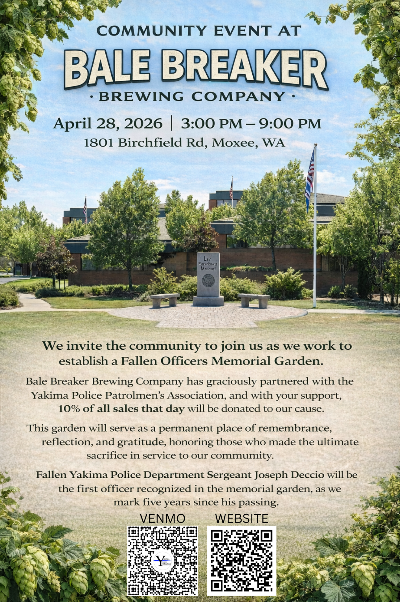 We invite the community to join us as we work to establish a Fallen Officers Memorial Garden. Bale Breaker Brewing…